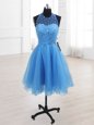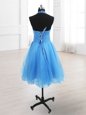 Organza High-neck Sleeveless Lace Up Sequins Evening Dress in Baby Blue