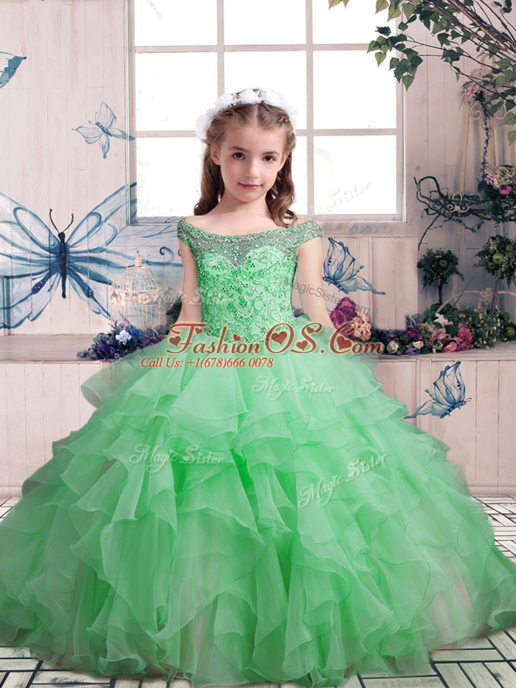 Organza Lace Up Little Girls Pageant Dress Wholesale Sleeveless Floor Length Beading and Ruffles
