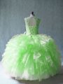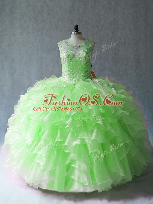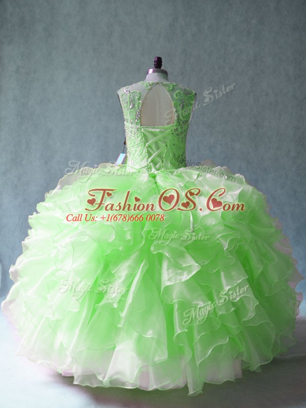 Organza Lace Up Scoop Sleeveless Floor Length Quinceanera Dresses Beading and Ruffles