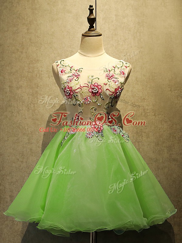 Home >  Prom Dresses >  Perfect Prom Dresses > Organza Lace Up Scoop Sleeveless Mini Length Prom Gown Embroidery