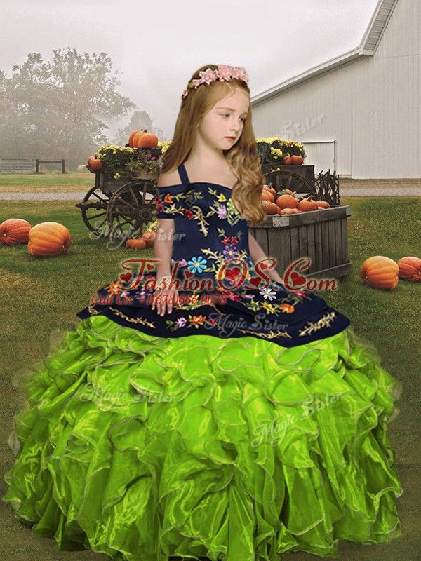 Home >  Special Occasion Dresses >  Beautiful Kids Pageant Dresses > Organza Lace Up Straps Sleeveless Floor Length Winning Pageant Gowns Embroidery