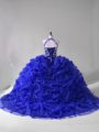 Organza Long Sleeves Ball Gown Prom Dress Court Train and Beading and Pick Ups