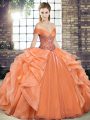 Organza Off The Shoulder Sleeveless Lace Up Beading and Ruffles 15 Quinceanera Dress in Orange