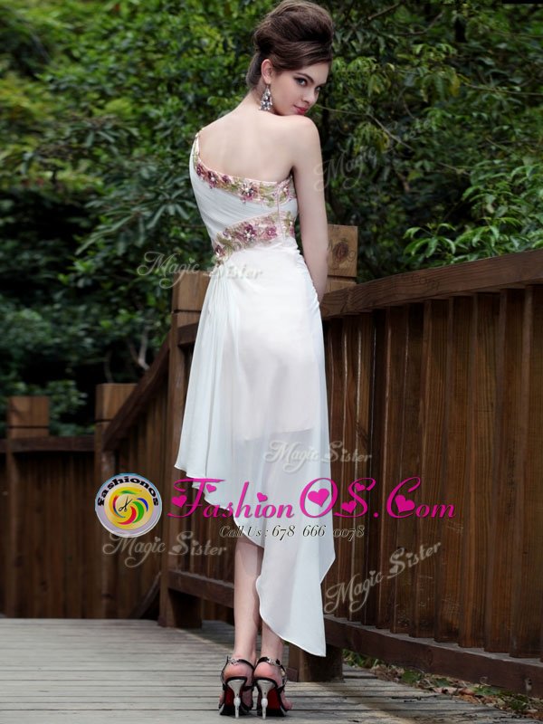 Home >  Prom Dresses >  Perfect Prom Dresses > Organza One Shoulder Sleeveless Side Zipper Appliques in White