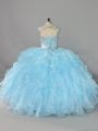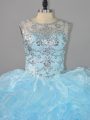 Organza Scalloped Sleeveless Lace Up Beading and Ruffles Sweet 16 Quinceanera Dress in Blue