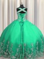 Organza Scoop Sleeveless Lace Up Beading and Pick Ups Sweet 16 Dress in Apple Green
