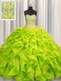 Home >  Quinceanera Dresses >  In Stock Quinceanera Dresses > Organza Scoop Sleeveless Lace Up Beading and Pick Ups Sweet 16 Dress in Apple Green
