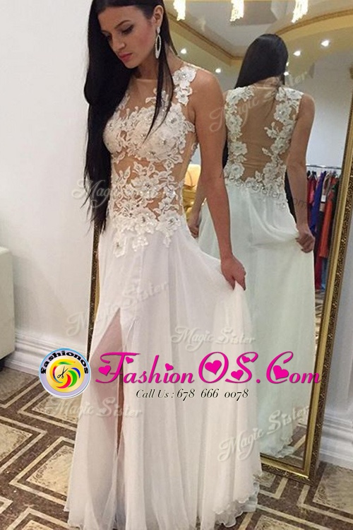 Organza Scoop Sleeveless Side Zipper Beading and Appliques Junior Homecoming Dress in White