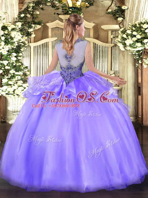 Organza Scoop Sleeveless Zipper Beading 15th Birthday Dress in Lavender