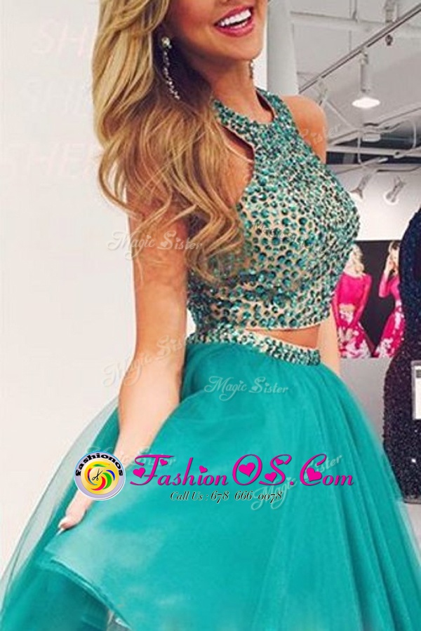 Home >  Prom Dresses >  Perfect Prom Dresses > Organza Scoop Sleeveless Zipper Beading in Turquoise