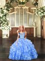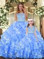 Organza Scoop Sleeveless Zipper Lace and Ruffled Layers Sweet 16 Quinceanera Dress in Light Blue