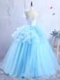 Organza Short Sleeves Floor Length Prom Dress and Appliques and Ruffles