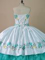 Organza Sleeveless Floor Length 15th Birthday Dress and Embroidery and Ruffles