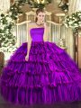 Organza Sleeveless Floor Length 15th Birthday Dress and Ruffled Layers