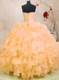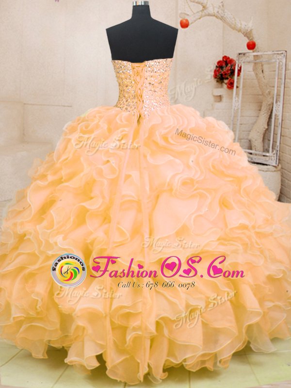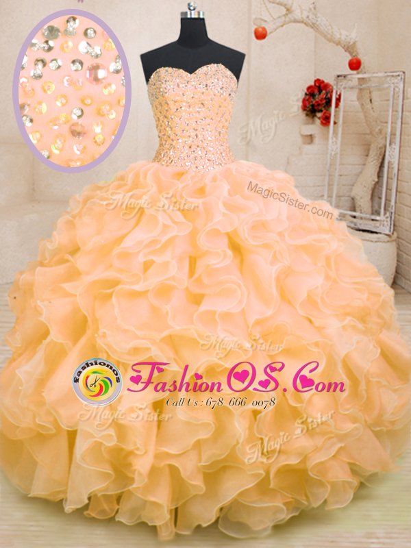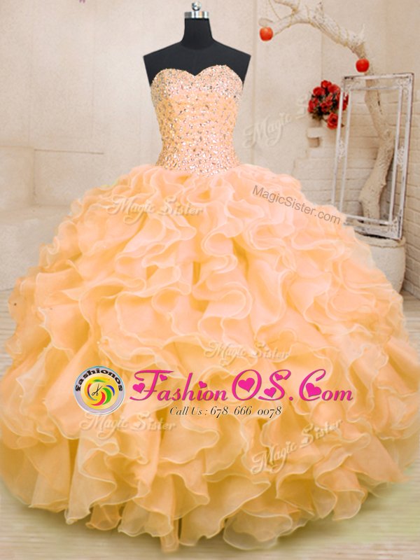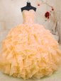 Home >  Quinceanera Dresses >  Fast Delivery Quinceanera Dresses > Organza Sleeveless Floor Length Ball Gown Prom Dress and Beading and Ruffles
