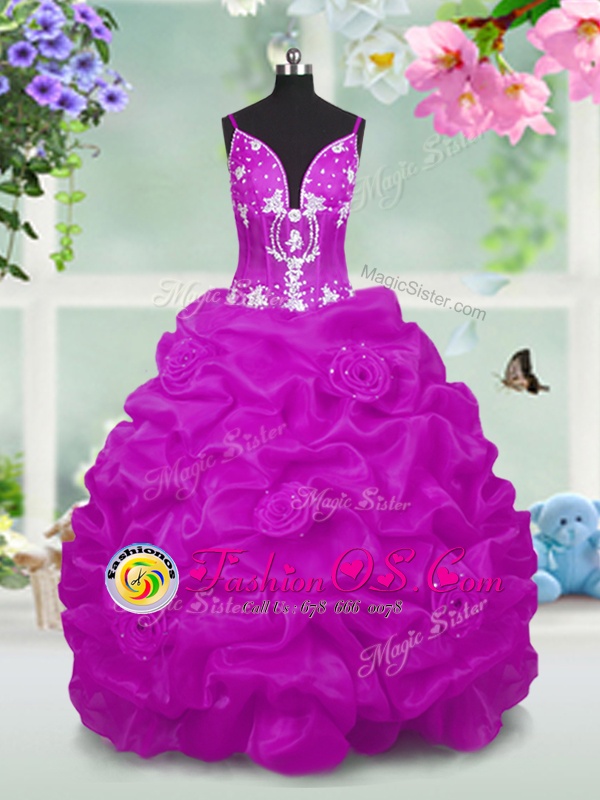 Home >  Special Occasion Dresses >  Mini Quinceanera Dresses > Organza Sleeveless Floor Length Child Pageant Dress and Beading and Ruffled Layers