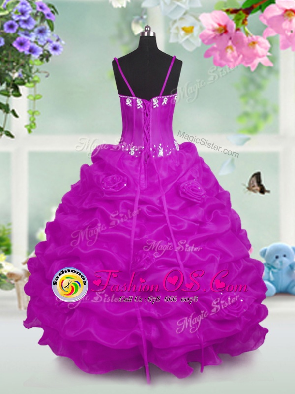 Organza Sleeveless Floor Length Child Pageant Dress and Beading and Ruffled Layers