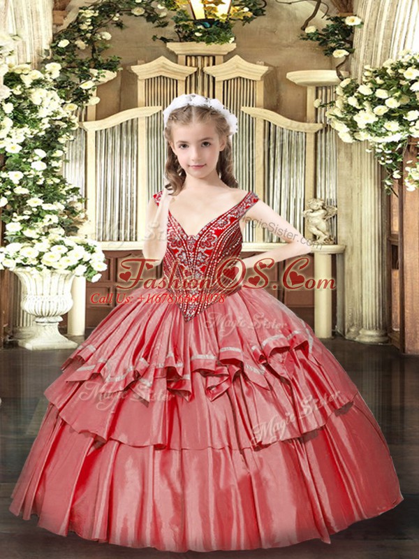 Home >  Special Occasion Dresses >  Lovely Little Girl Pageant Dresses > Organza Sleeveless Floor Length Kids Formal Wear and Beading and Ruffled Layers
