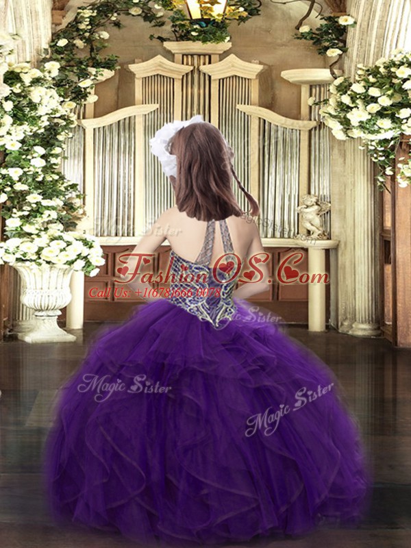 Organza Sleeveless Floor Length Kids Formal Wear and Beading and Ruffles