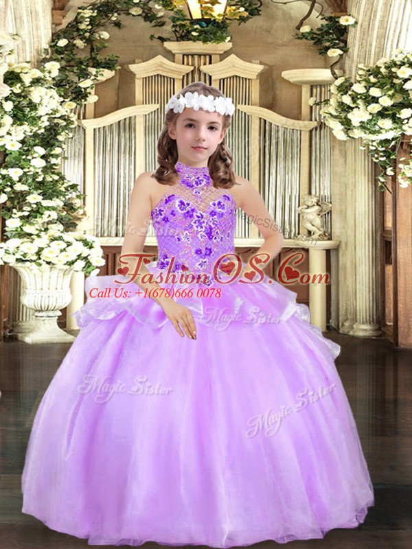 Organza Sleeveless Floor Length Little Girls Pageant Dress and Appliques