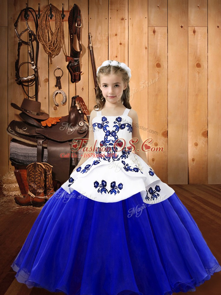 Organza Sleeveless Floor Length Pageant Gowns For Girls and Embroidery