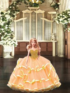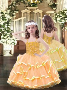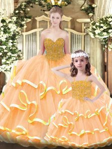 Organza Sleeveless Floor Length Quince Ball Gowns and Beading and Ruffled Layers
