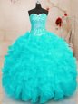 Organza Sleeveless Floor Length Quince Ball Gowns and Beading and Ruffles