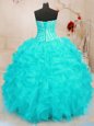 Home >  Quinceanera Dresses >  Pretty Quinceanera Dresses > Organza Sleeveless Floor Length Quince Ball Gowns and Beading and Ruffles