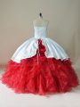 Organza Sleeveless Floor Length Quince Ball Gowns and Embroidery and Ruffles