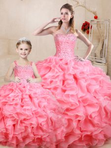 Home >  Quinceanera Dresses >  Princesita with Quinceanera Dresses > Organza Sleeveless Floor Length Sweet 16 Dresses and Beading and Ruffles