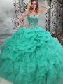 Organza Sleeveless Floor Length Sweet 16 Quinceanera Dress and Beading and Ruffles