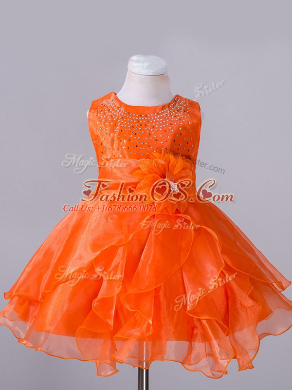 Home >  Special Occasion Dresses >  New Style Little Girl Pageant Dresses > Organza Sleeveless Knee Length Little Girls Pageant Dress Wholesale and Beading and Hand Made Flower