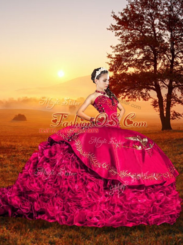 Organza Sleeveless Sweet 16 Quinceanera Dress Brush Train and Embroidery and Ruffles