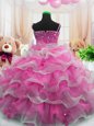 Home >  Special Occasion Dresses >  New Style Little Girl Pageant Dresses > Organza Spaghetti Straps Sleeveless Zipper Beading and Ruffled Layers Little Girls Pageant Dress Wholesale in Hot Pink