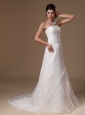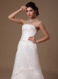Organza Strapless Beaded Decorate Waist A-line Court Train Custom Made 2013 Low Cost Wedding