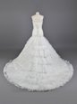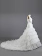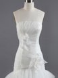 Organza Strapless Sleeveless Brush Train Lace Up Ruffled Layers and Hand Made Flower Wedding Dresses in White