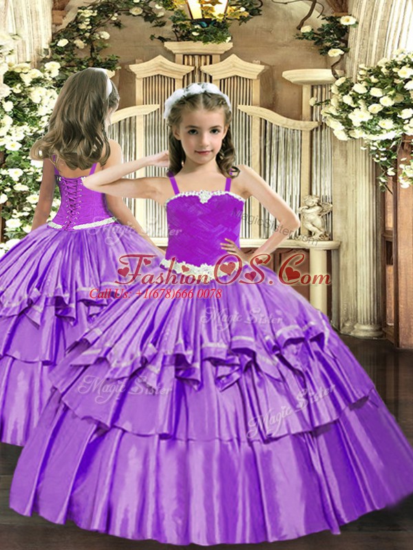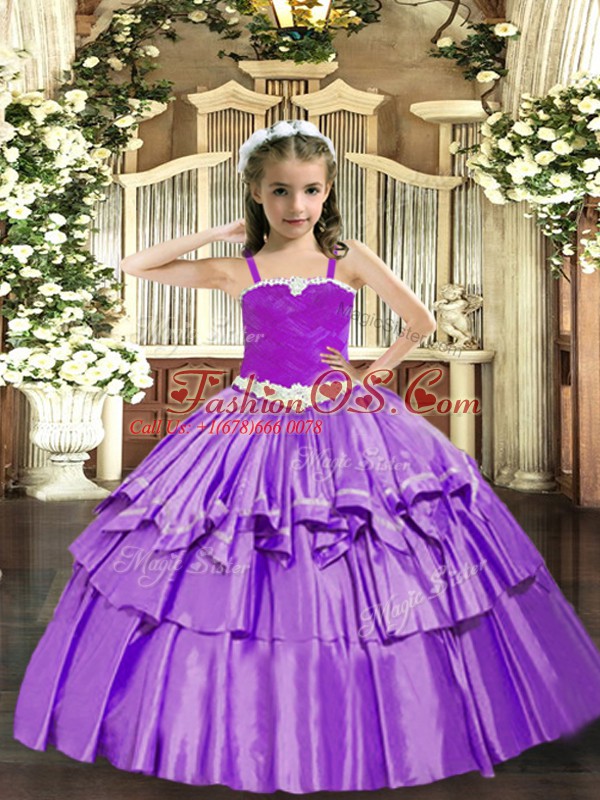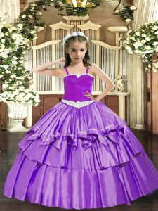 Home >  Special Occasion Dresses >  Beautiful Kids Pageant Dresses > Organza Straps Sleeveless Lace Up Appliques and Ruffled Layers Glitz Pageant Dress in Lavender