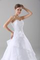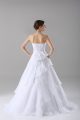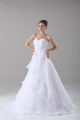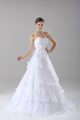 Organza Sweetheart Sleeveless Brush Train Lace Up Beading and Ruffled Layers and Hand Made Flower Wedding Dress in White