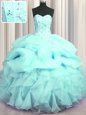 Home >  Quinceanera Dresses >  Clearance Quinceanera Dresses > Organza Sweetheart Sleeveless Lace Up Beading and Appliques and Ruffles Sweet 16 Quinceanera Dress in Multi-color