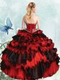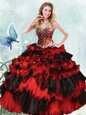 Home >  Quinceanera Dresses >  Fast Delivery Quinceanera Dresses > Organza Sweetheart Sleeveless Lace Up Beading and Ruffled Layers and Sequins Quinceanera Gowns in Red And Black