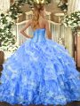 Organza Sweetheart Sleeveless Lace Up Beading and Ruffled Layers Quinceanera Gown in Blue