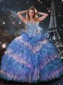 Organza Sweetheart Sleeveless Lace Up Beading and Ruffled Layers Quinceanera Gown in Multi-color