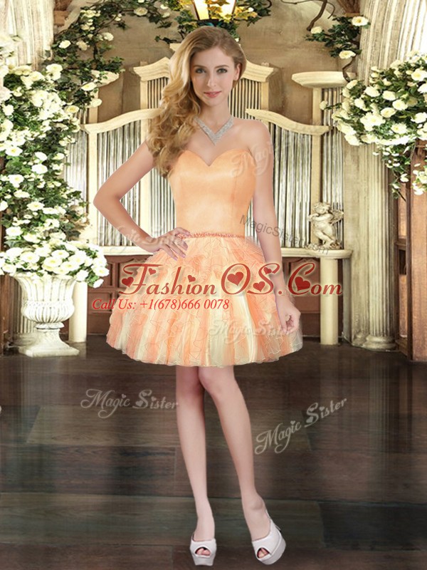 Organza Sweetheart Sleeveless Lace Up Beading and Ruffles 15 Quinceanera Dress in Orange