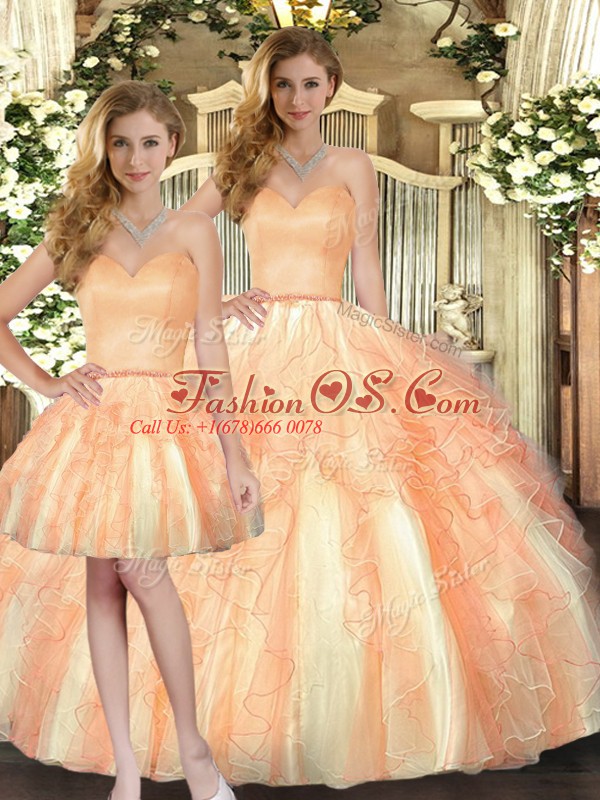 Home >  Quinceanera Dresses >  Detachable Quinceanera Skirts > Organza Sweetheart Sleeveless Lace Up Beading and Ruffles 15 Quinceanera Dress in Orange