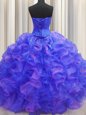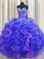 Organza Sweetheart Sleeveless Lace Up Beading and Ruffles 15th Birthday Dress in Royal Blue
