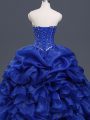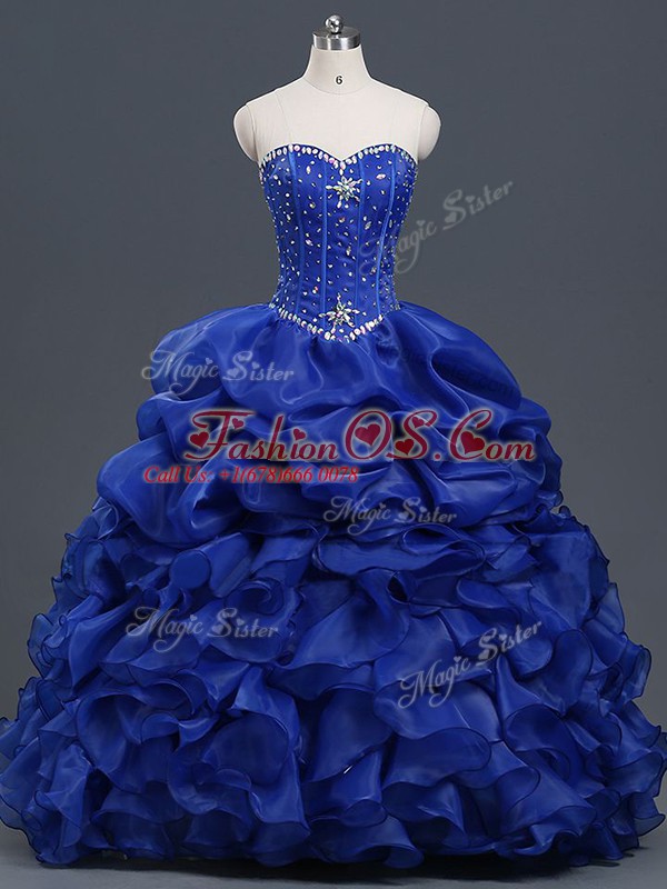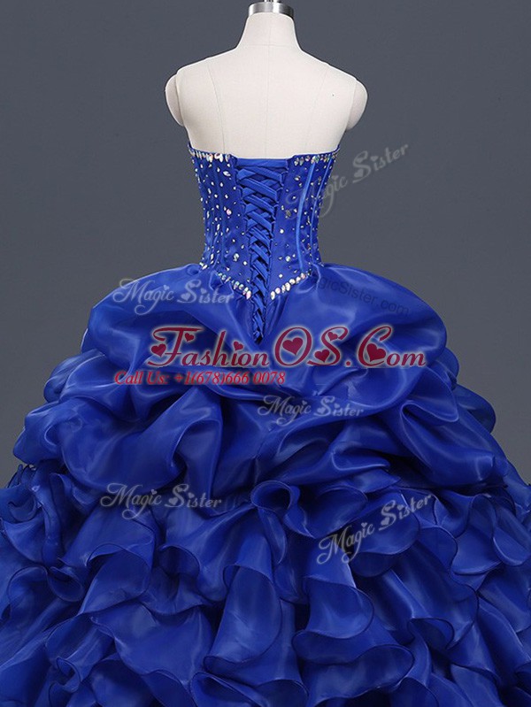 Organza Sweetheart Sleeveless Lace Up Beading and Ruffles and Pick Ups Sweet 16 Dress in Royal Blue