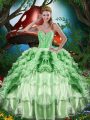 Organza Sweetheart Sleeveless Lace Up Beading and Ruffles and Ruffled Layers Sweet 16 Dress in Green