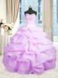 Organza Sweetheart Sleeveless Lace Up Beading and Ruffles Ball Gown Prom Dress in Turquoise