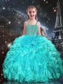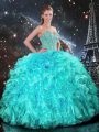 Organza Sweetheart Sleeveless Lace Up Beading and Ruffles Quinceanera Gowns in Aqua Blue