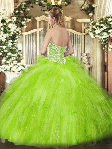 Home >  Quinceanera Dresses >  Luxurious Quinceanera Dresses > Organza Sweetheart Sleeveless Lace Up Beading and Ruffles Quinceanera Gowns in Gold